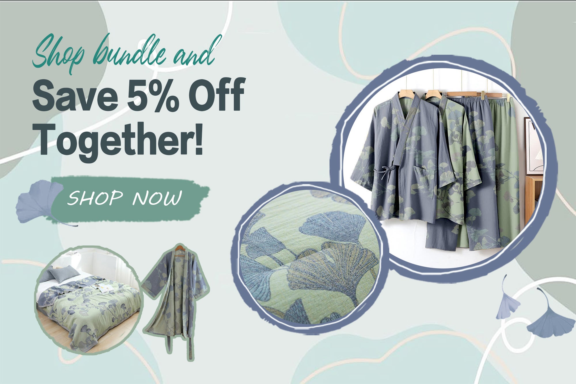 Ownkoti Large Ginkgo Leaf Cotton Kimono Robe