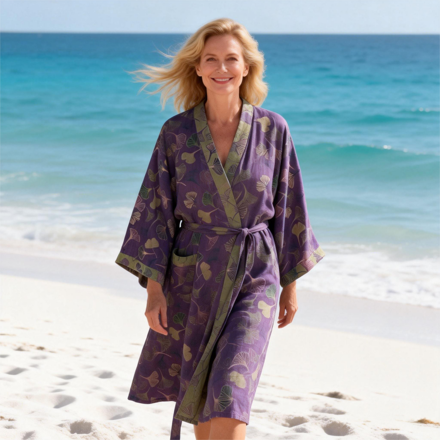 Ginkgo Leaf Organic Cotton Kimono Loungewear