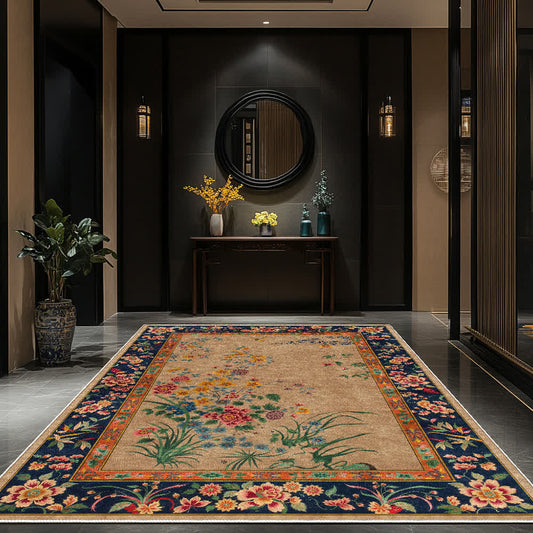 Anti-slip Washable Elegant Flowers Area Rug