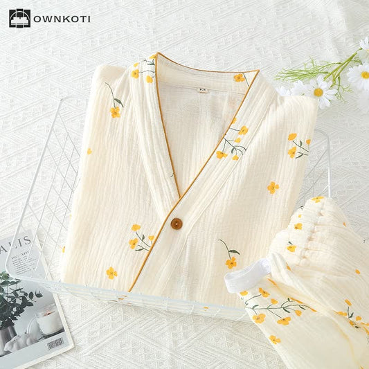Colorful Dots Cotton Gauze Kimono Bathrobe