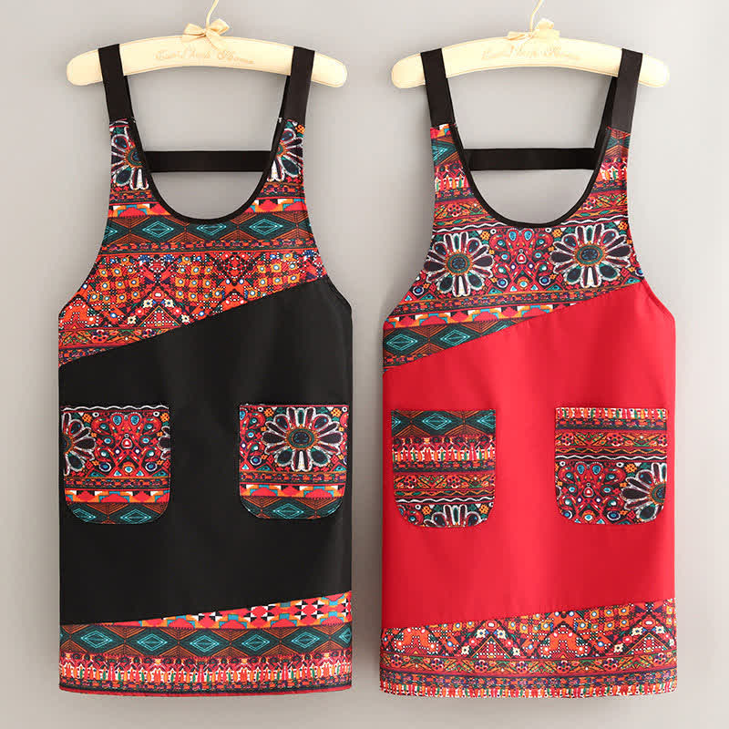 Stylish Ethnic Style Kitchen Apron with Pockets