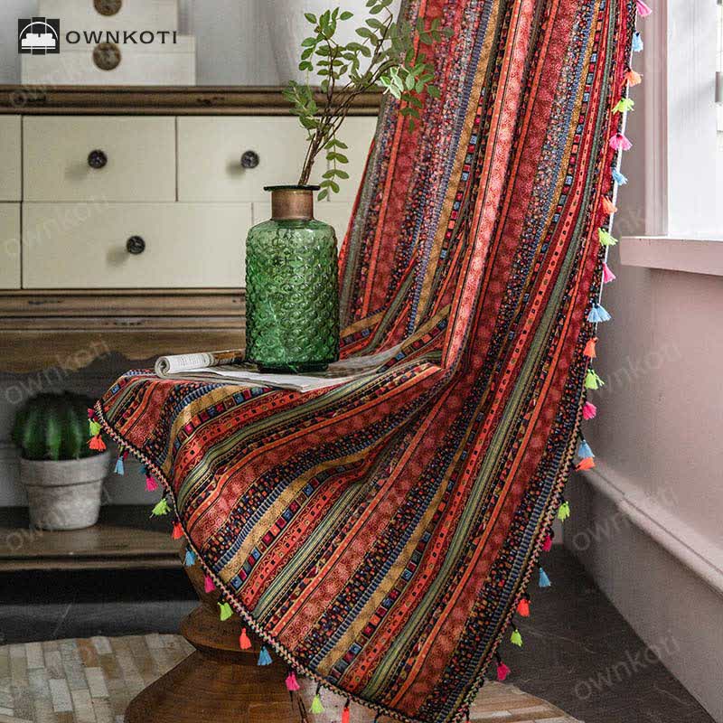 Ownkoti Boho Blue Pattern Semi-Blackout Curtain