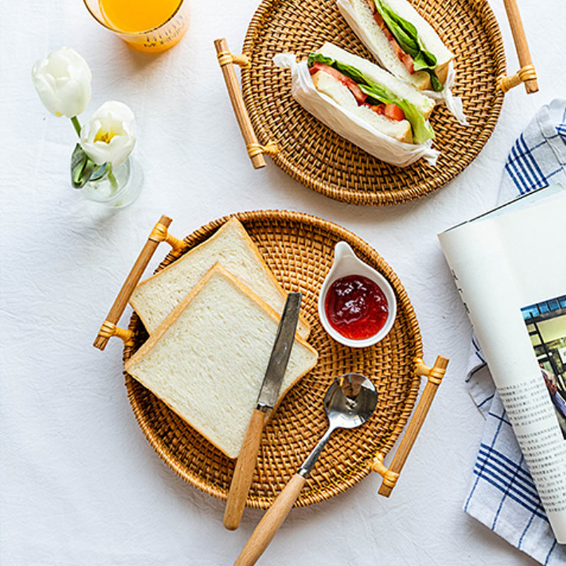 Ownkoti Hand Woven Rattan Round Tray With Handles