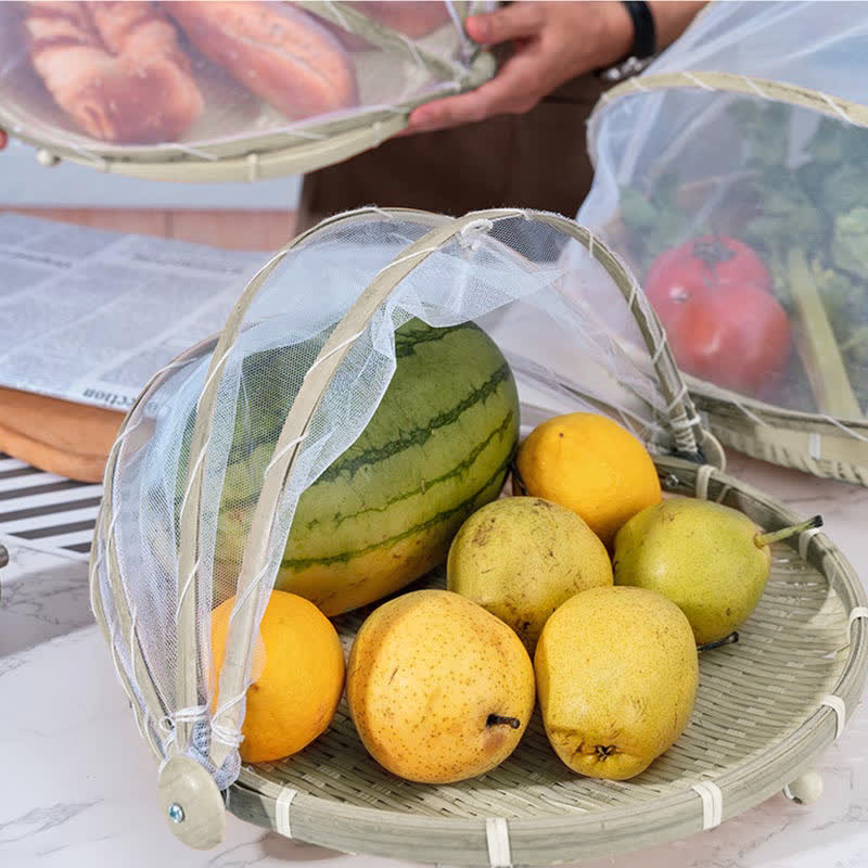 Ownkoti Creative Hand-Woven Food Basket / Tray with Net Cover