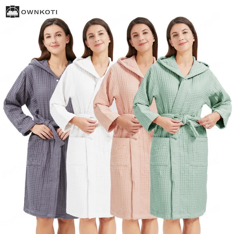 Pure Cotton Waffle Textured Breathable Bathrobe