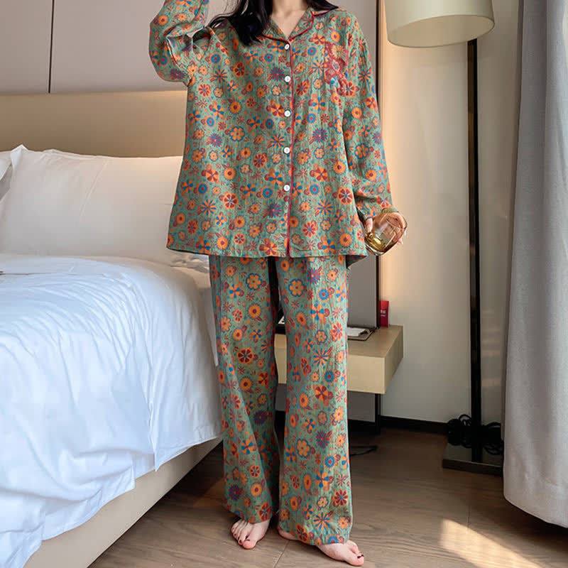 Ownkoti Retro Plus Size Soft Floral Nightwear Set