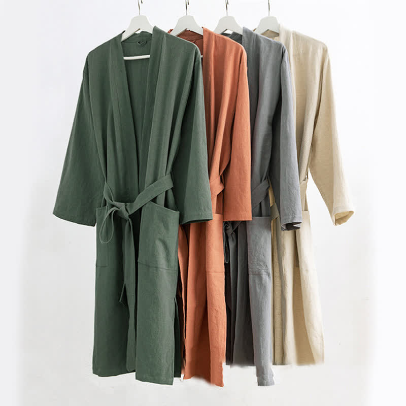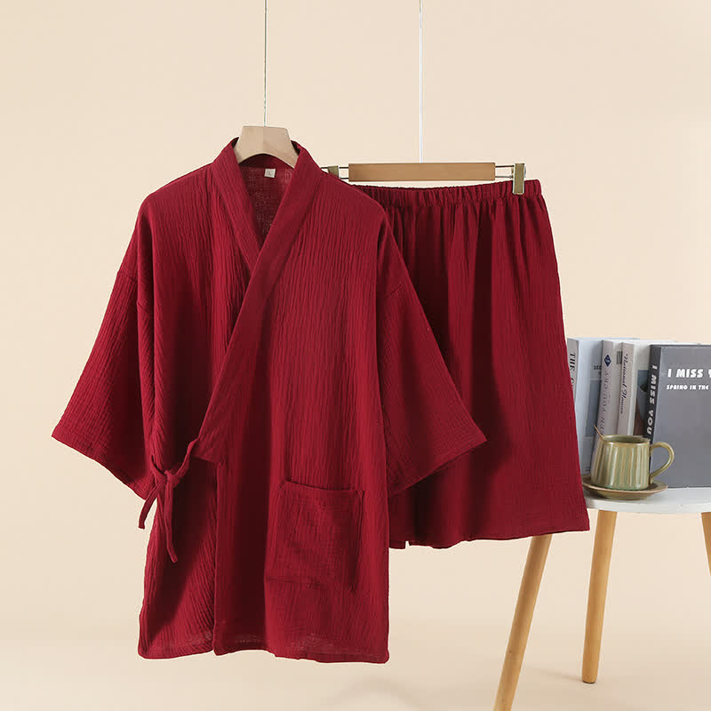 Unisex Solid Color Cotton Gauze Kimono Pajama Set