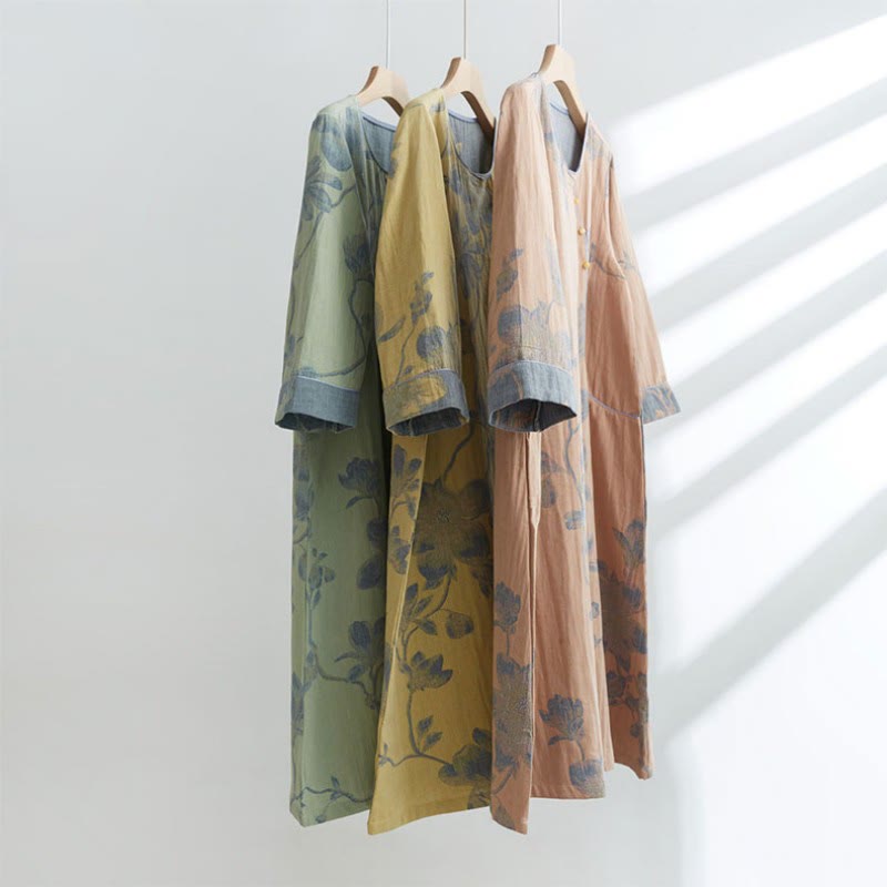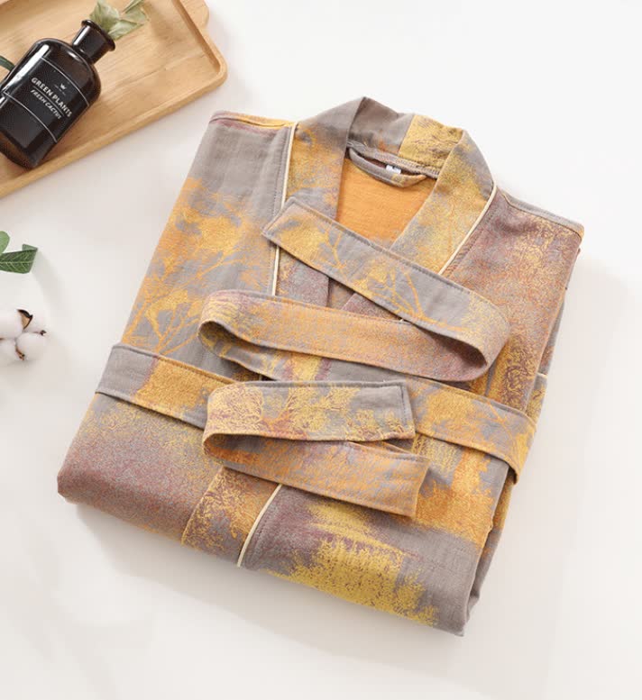Jacquard Leaf Cotton Kimono Spa Bathrobe