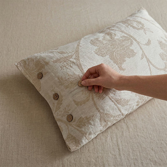 Rustic Floral Linen Button Pillowcases (2PCS)