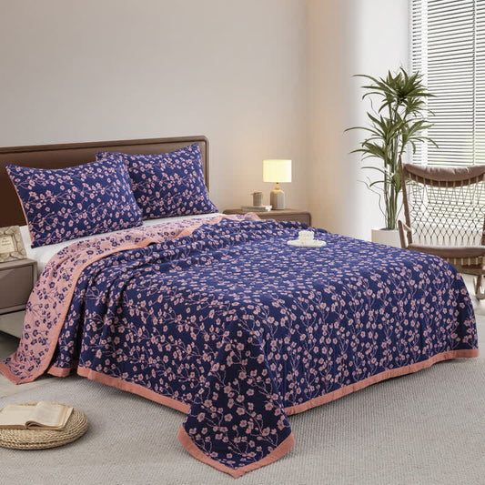 Elegant Floral Cotton Double Layer Gauze Reversible Quilt