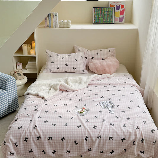 Girly Bow-knit Sherpa Throw Blanket