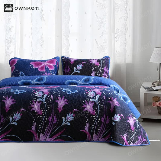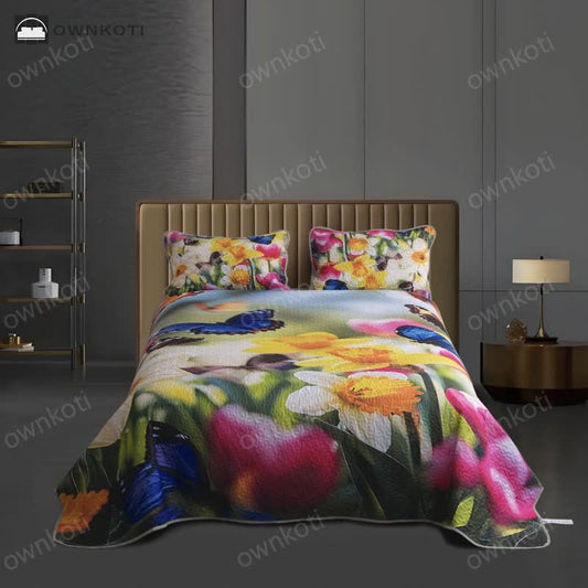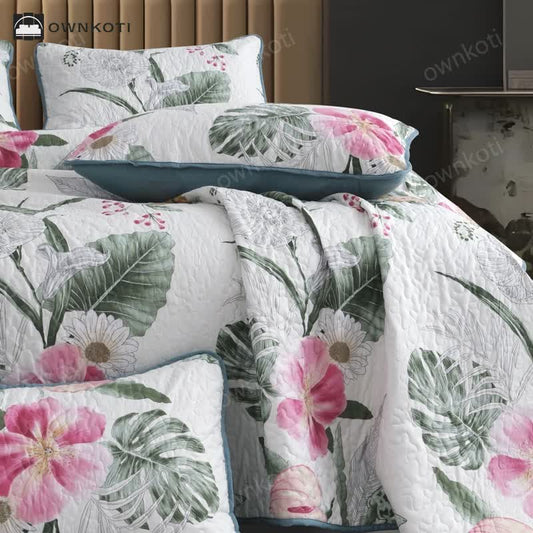 Colorful Floral Quilted Lightweight Bedding Set(3PCS)