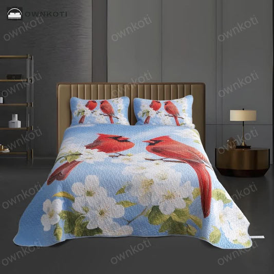 Floral Bird Quilted Soft Bedding Set(3PCS)