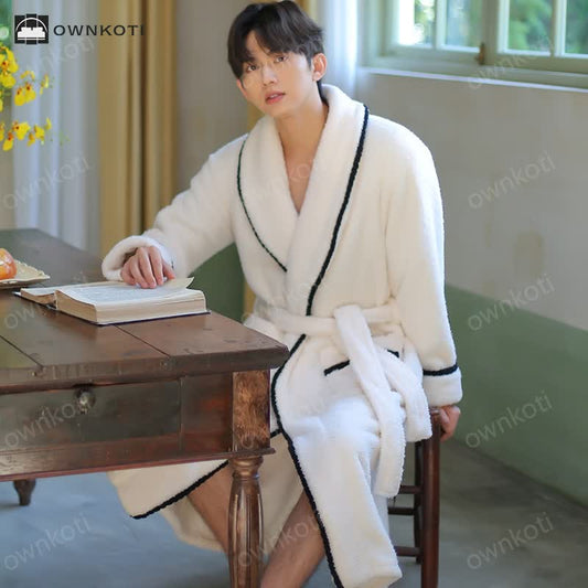 Winter Fleece Couple Lapel Neckline Bathrobe