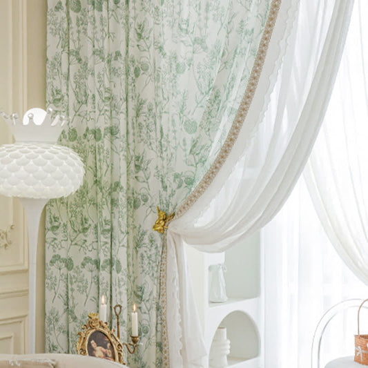 French Rustic Style Pinecone Ruffle Gauze Curtain