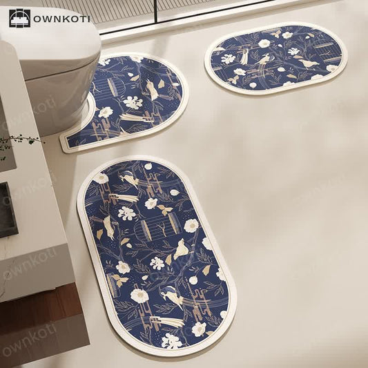 Luxurious Botanical Flower Waterproof Shower Curtain Mat Set