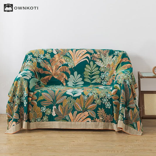 Forest Style Cotton Gauze Reversible Tassel Blanket