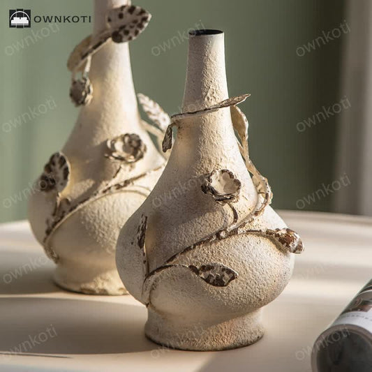 Luxury Torch Metal Leather Vase Decorative Ornament