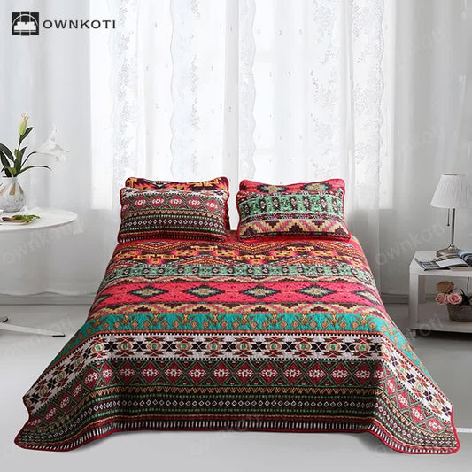 Bohemian Geometric Quilted Breathable Bedding Set(3PCS)