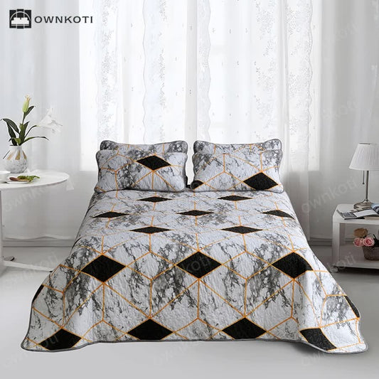 Marble Geometric Breathable Quilted Bedding Set(3PCS)