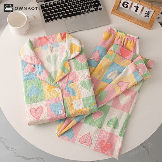Heart Lapel Cotton Gauze Breathable Pajama Set