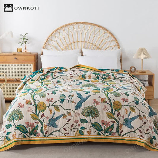 Reversible Floral Bird Cotton Gauze Quilt