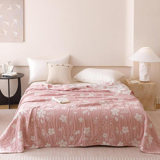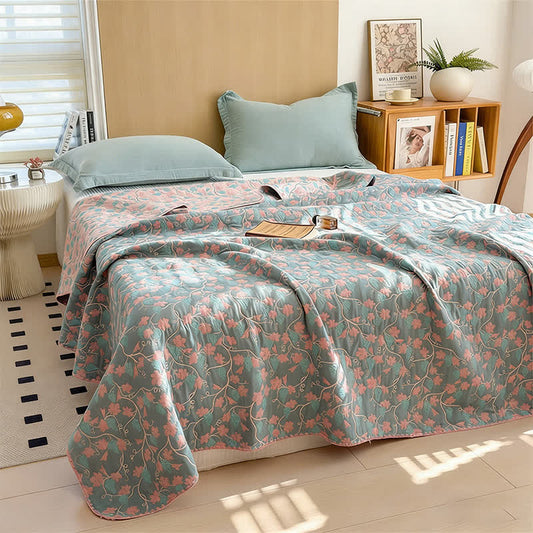 Elegant Floral Cotton 3-Layer Gauze Quilt