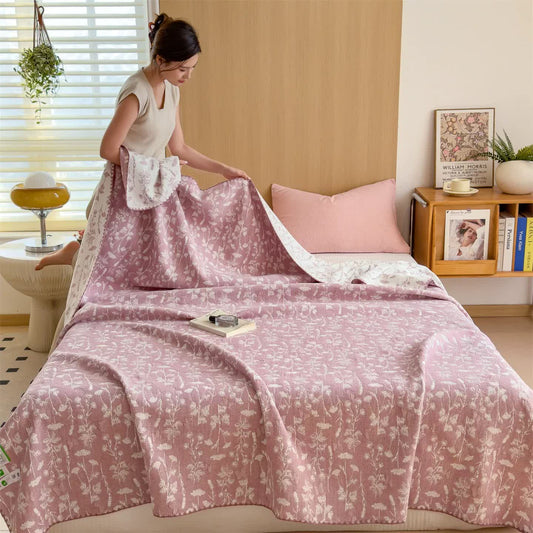 Elegant Floral Jacquard Cotton 3-Layer Gauze Quilt
