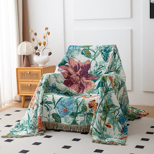 Colorful Luxurious Peony Cotton Tassel Quilt