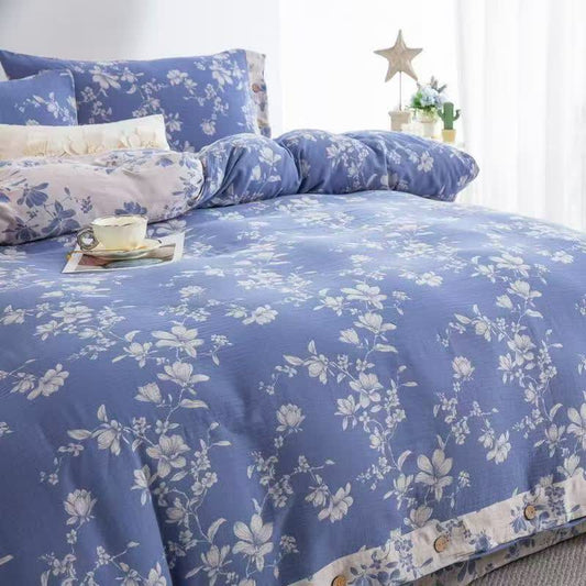 Blue Lily Cotton Gauze Bedding Set(4PCS)