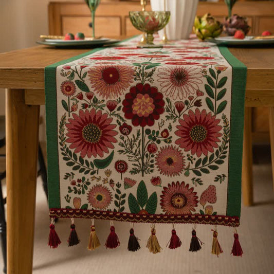 Vintage Branch Jacquard Tassel Table Runner
