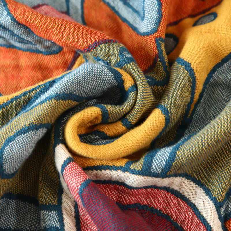 Artistic Floral Cotton Gauze Tassel Reversible Blanket