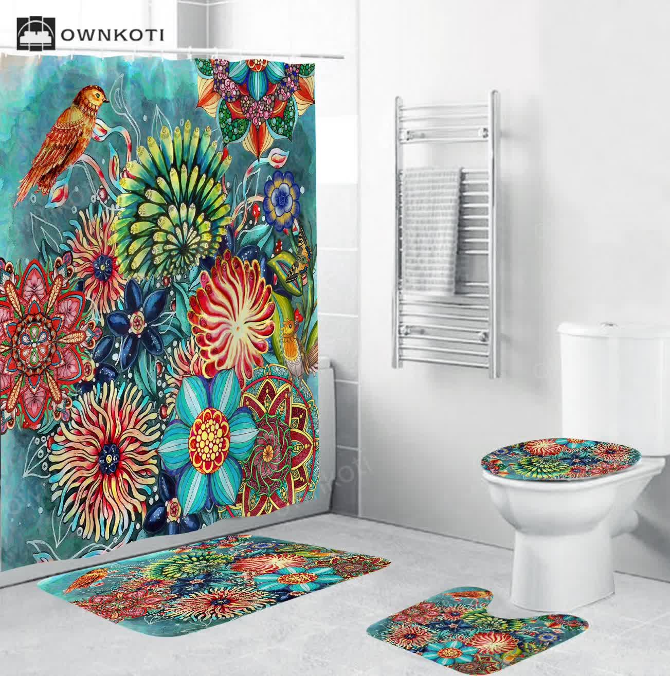 This gorgeous shower curtain showcases a lively and eclectic floral design that adds a touch of bohemian chic and artistic flair to any bathroom. Crafted from high-quality waterproof fabric, it combines durability and practicality while enhancing your decor. For a coordinated and vibrant look, pair it with the matching floor mat set to bring even more color and beauty to your space.