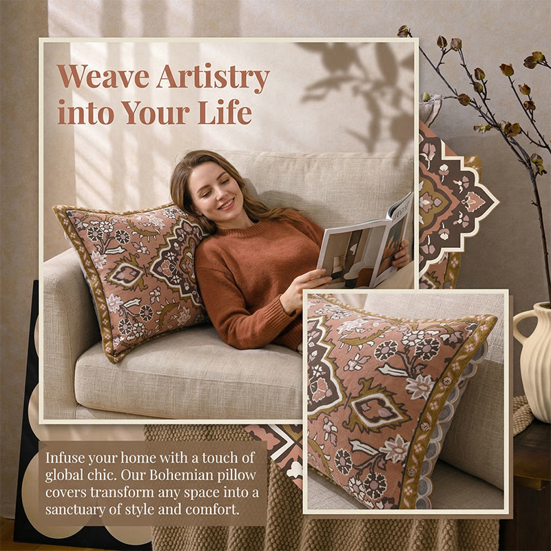 Bohemian Jacquard Button Pillowcases (2PCS)