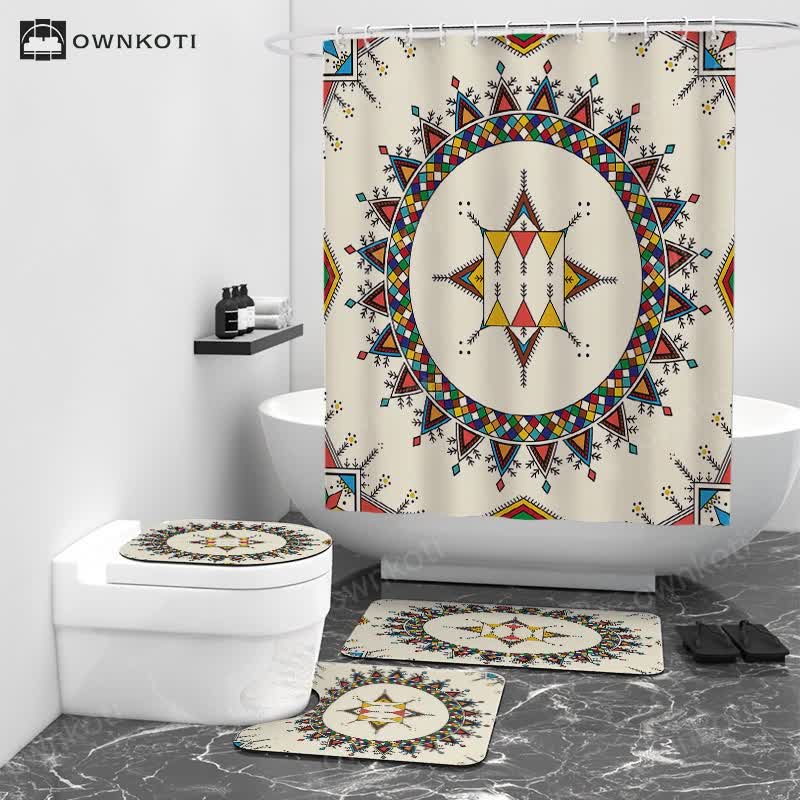 Made from high-quality, waterproof fabric, the shower curtain effectively contains water, keeping your bathroom dry and ensuring durability. Ideal for personal bathrooms, guest baths, or vacation rentals, it enhances decor with a fun and warm ambiance. With a beautifully designed shower curtain and a matching bath mat, perfect for creating a cozy and artistic atmosphere.
