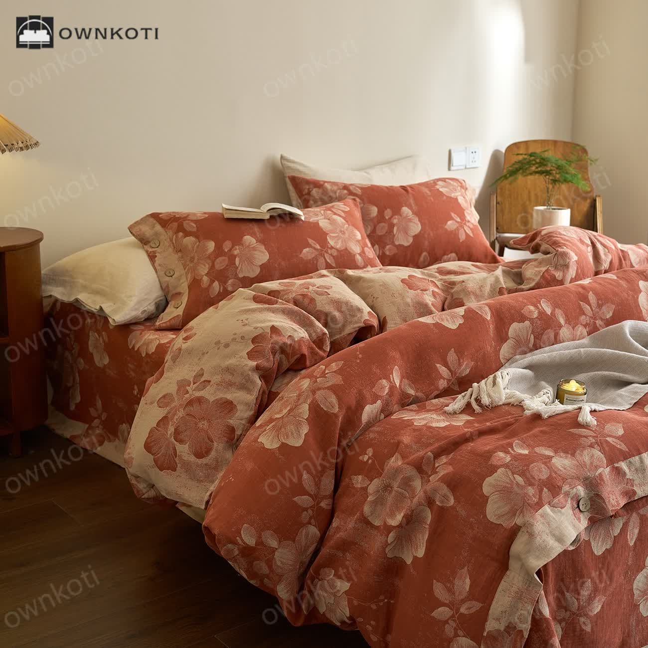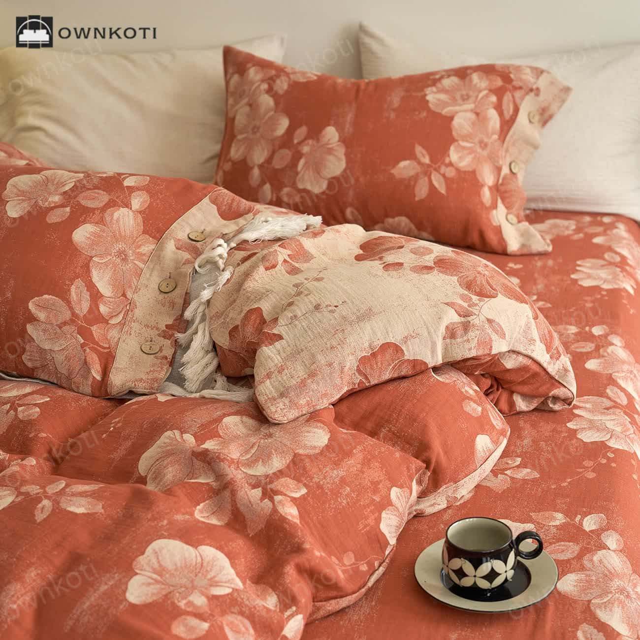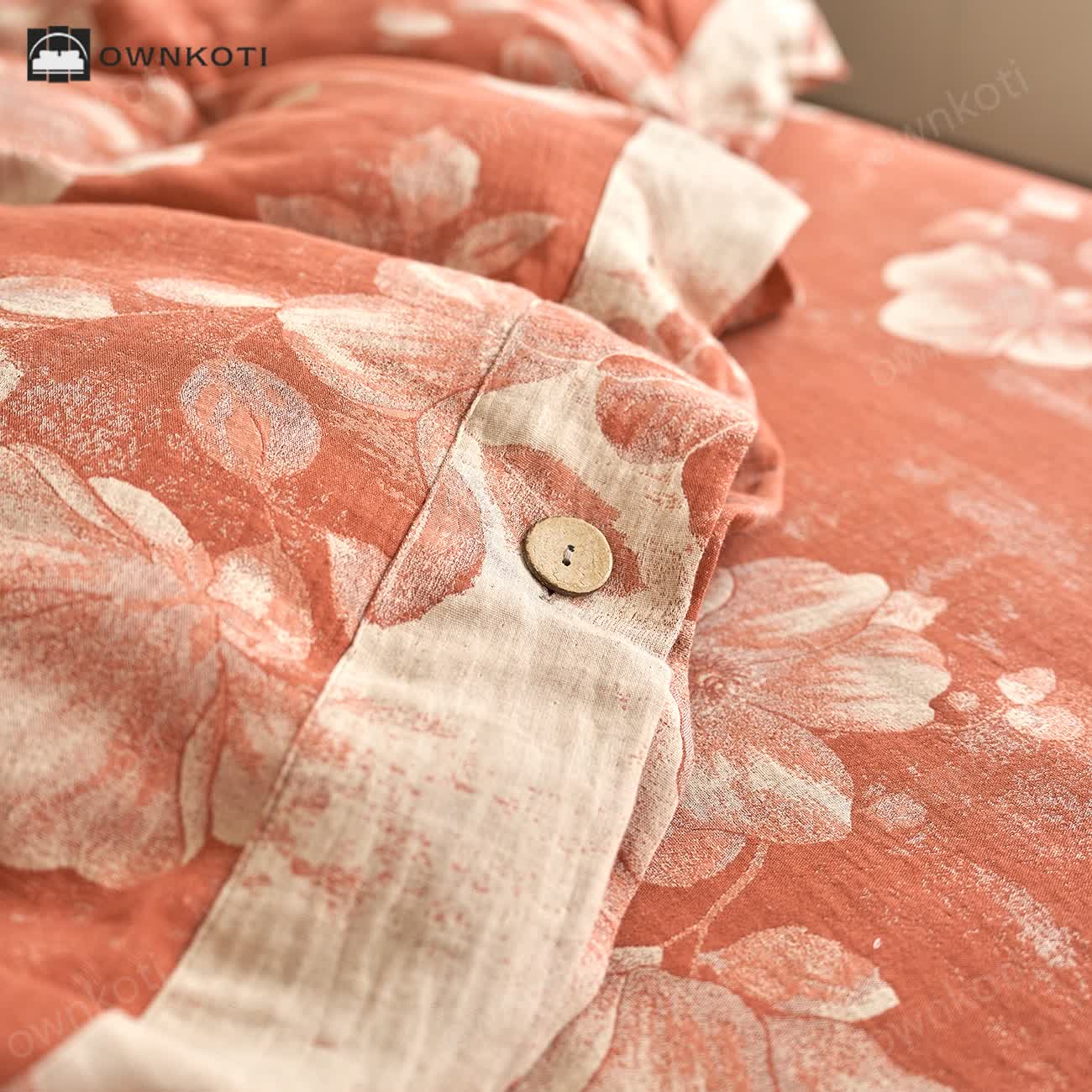 Button Yarn-dyed Cotton Gauze Bedding Set (4PCS)
