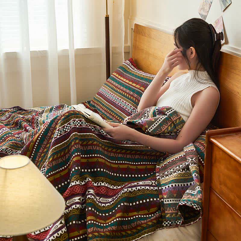 The Cotton Gauze Retro Ethnic Style Quilt blends comfort with cultural charm. Made from soft, breathable cotton gauze, this quilt features a retro ethnic-inspired pattern that adds warmth and character to your space. Lightweight yet cozy, it's perfect for all seasons and ideal for layering or using on its own. The unique design and textured feel bring a relaxed, bohemian touch to your bedroom, making it a standout piece for those who love vintage and globally inspired style.
