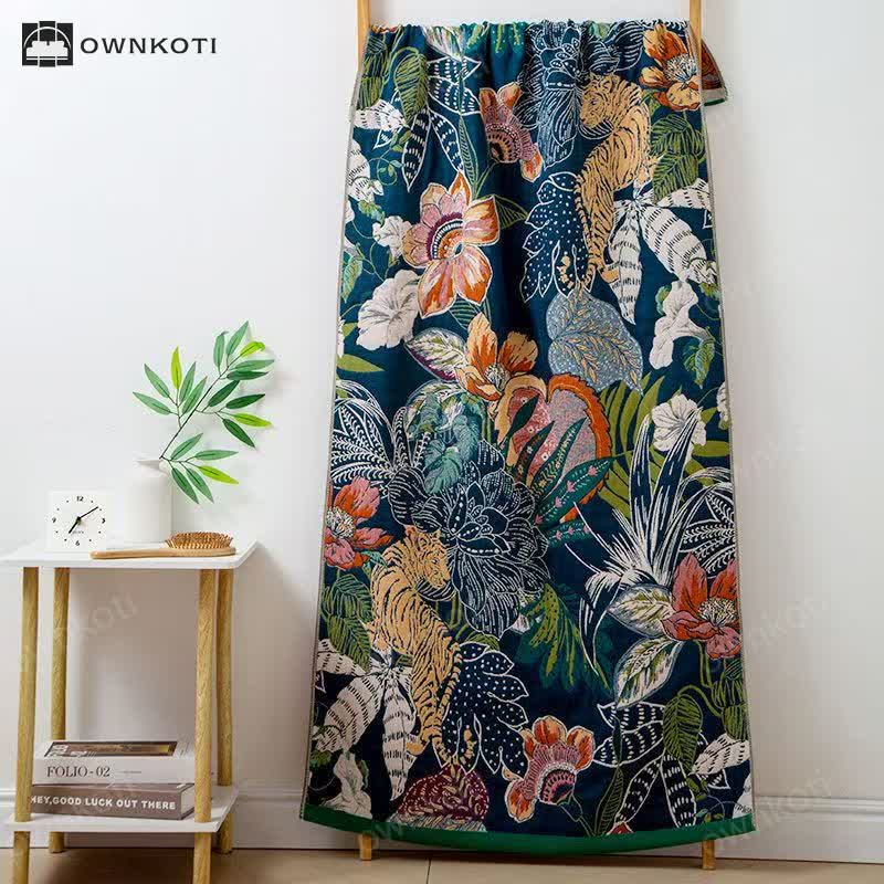 Featuring delicate floral prints, this bath towel exudes elegance and impeccable craftsmanship. Made from cotton gauze, it is both durable and lightweight and quick-drying.