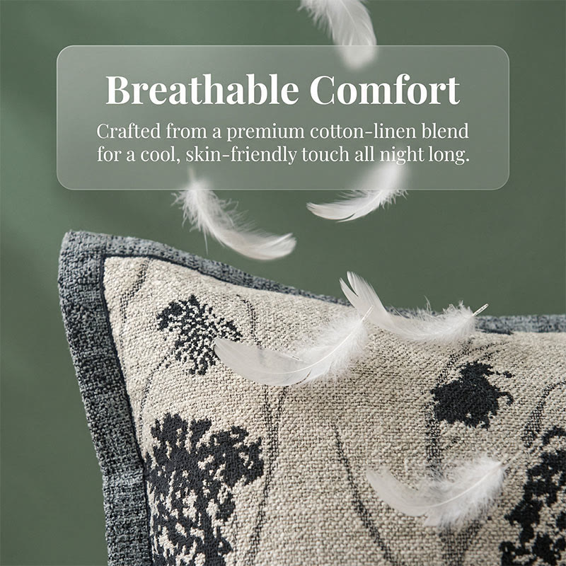 Features:Crafted from 100% cotton with yarn-dyed jacquard weaving, this pillowcase brings an artistic, slightly moody vintage feel to your bedroom. The abstract floral and grass motifs in deep black against a warm natural background create a look that's both organic and modern — like a quiet botanical sketch. The 30s cotton construction is breathable and moisture-wicking, helping you stay cool and dry through the night. Just three buttons that keep your pillow insert secure while you sleep and make washing easy. Available only at Ownkoti.