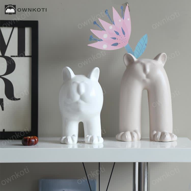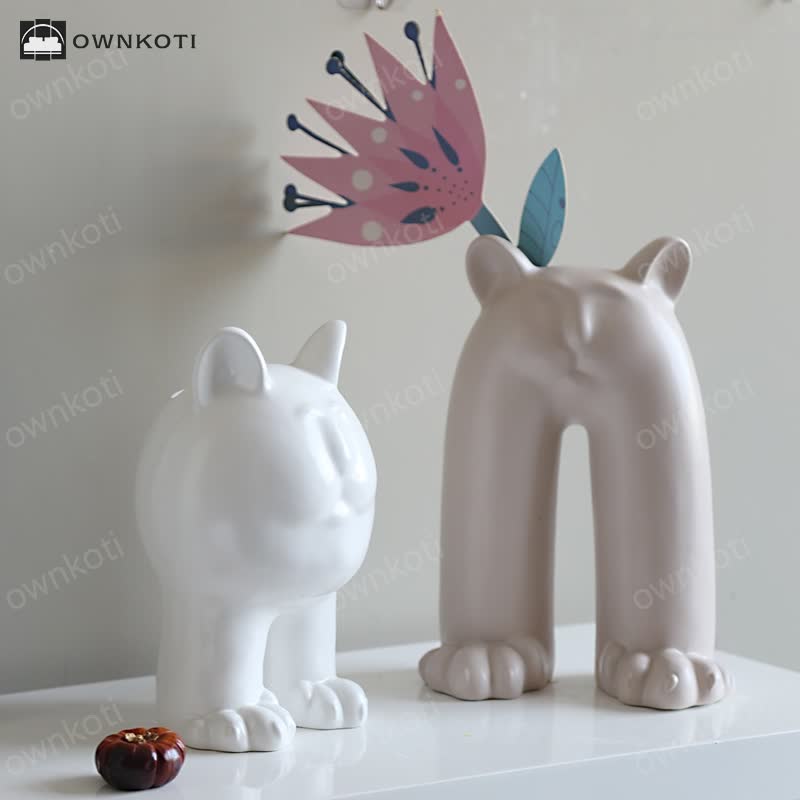 This charming hand-painted ceramic cat vase adds personality to any space and is perfect for displaying flowers or serving as a stylish pen holder. Its unique creamy finish makes it an eye-catching addition to desks, shelves, or any corner of your home.