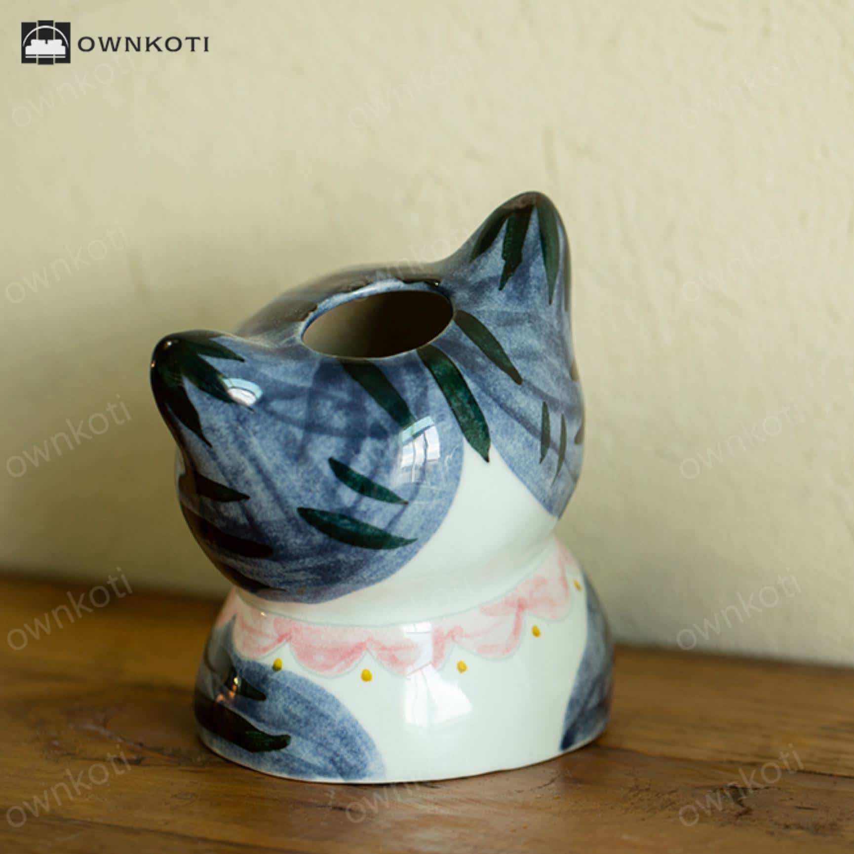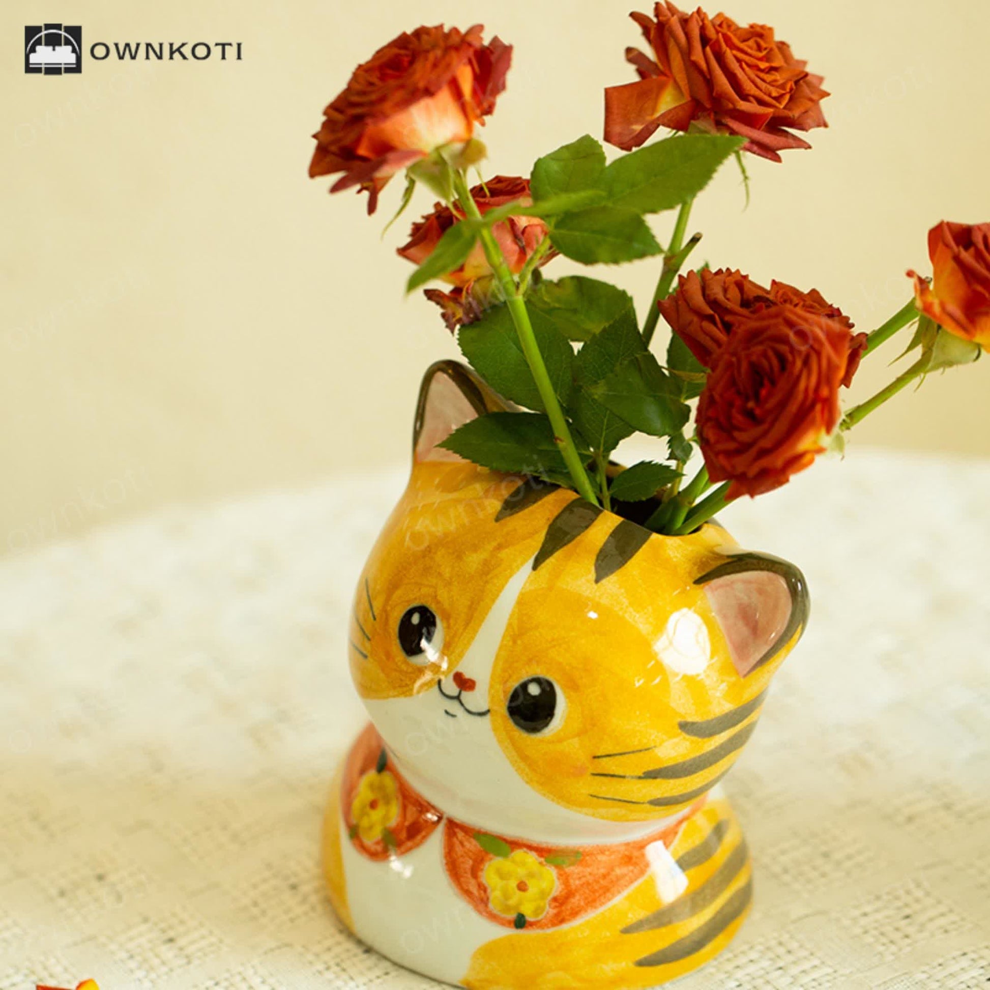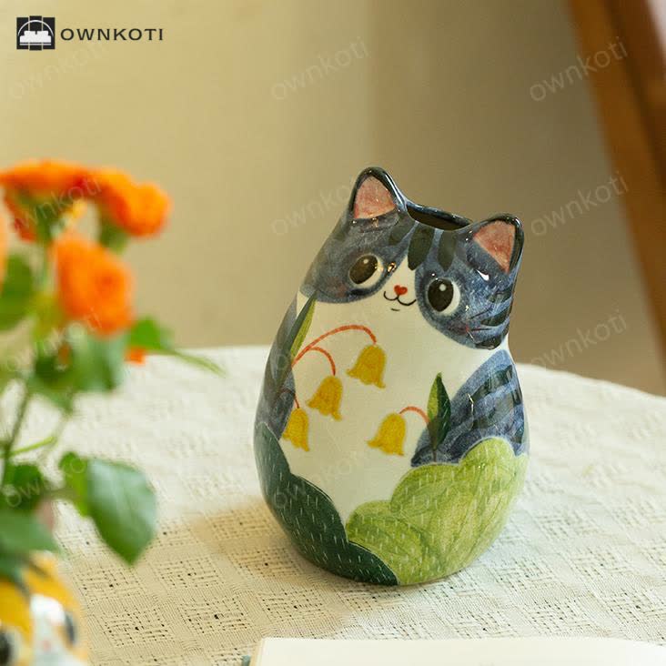Crafted from premium ceramic, this vase showcases exquisite hand-painted details that enhance its character and appeal. Perfect for display on a shelf, desk, or coffee table, it’s guaranteed to spark conversations and serve as a charming centerpiece. Incorporate this delightful cat-shaped vase into your collection and revel in its playful charm!