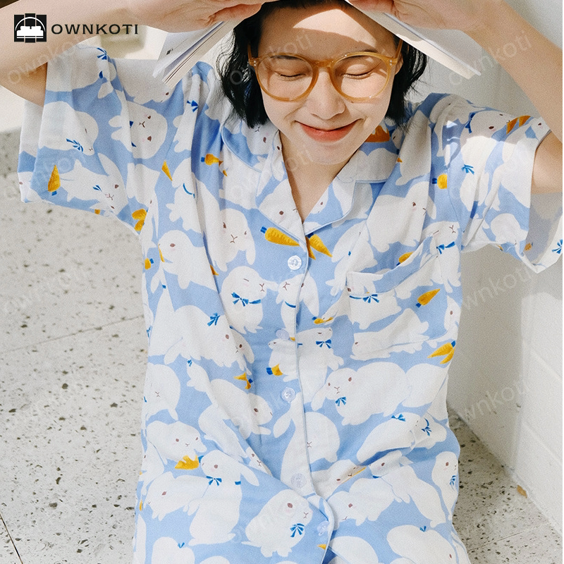 Cute Rabbit Cotton Gauze Nightwear Set