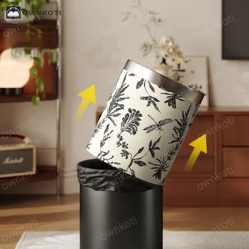 This trash can features a double-layer design with inner and outer buckets, keeping the garbage bag hidden for a combination of aesthetics and practicality. Available in multiple sizes and styles to meet diverse needs, it is made from high-quality leather and thickened materials, offering a refined feel. The carefully designed non-slip base ensures secure placement.