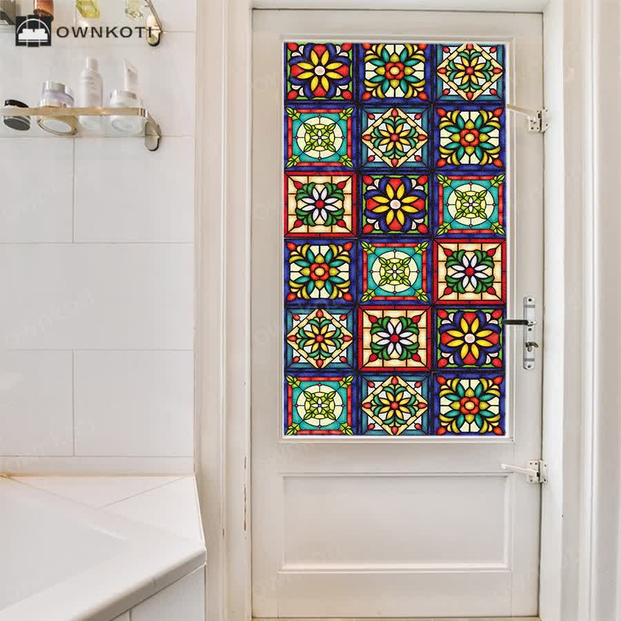 - Perfect for windows, glass doors, or shower enclosures, this film creates a beautiful stained-glass effect that filters light while preventing unwanted views.
