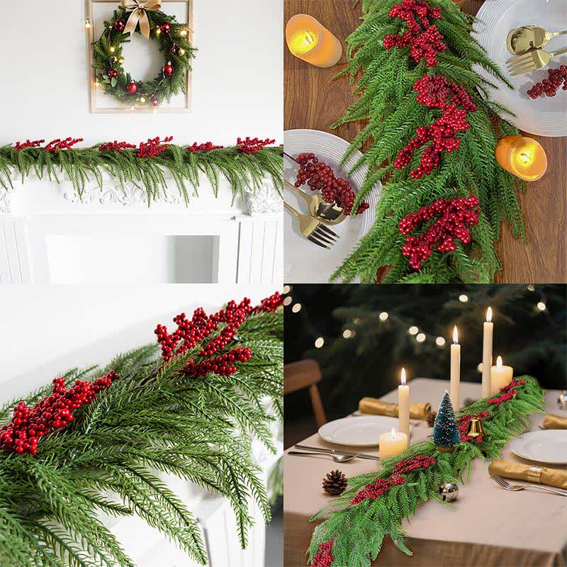 - Traditional Red & Green Aesthetic: Features realistic Norfolk Pine greenery and vibrant red berries for a classic holiday look, perfect for mantels, staircases, and dining tables.