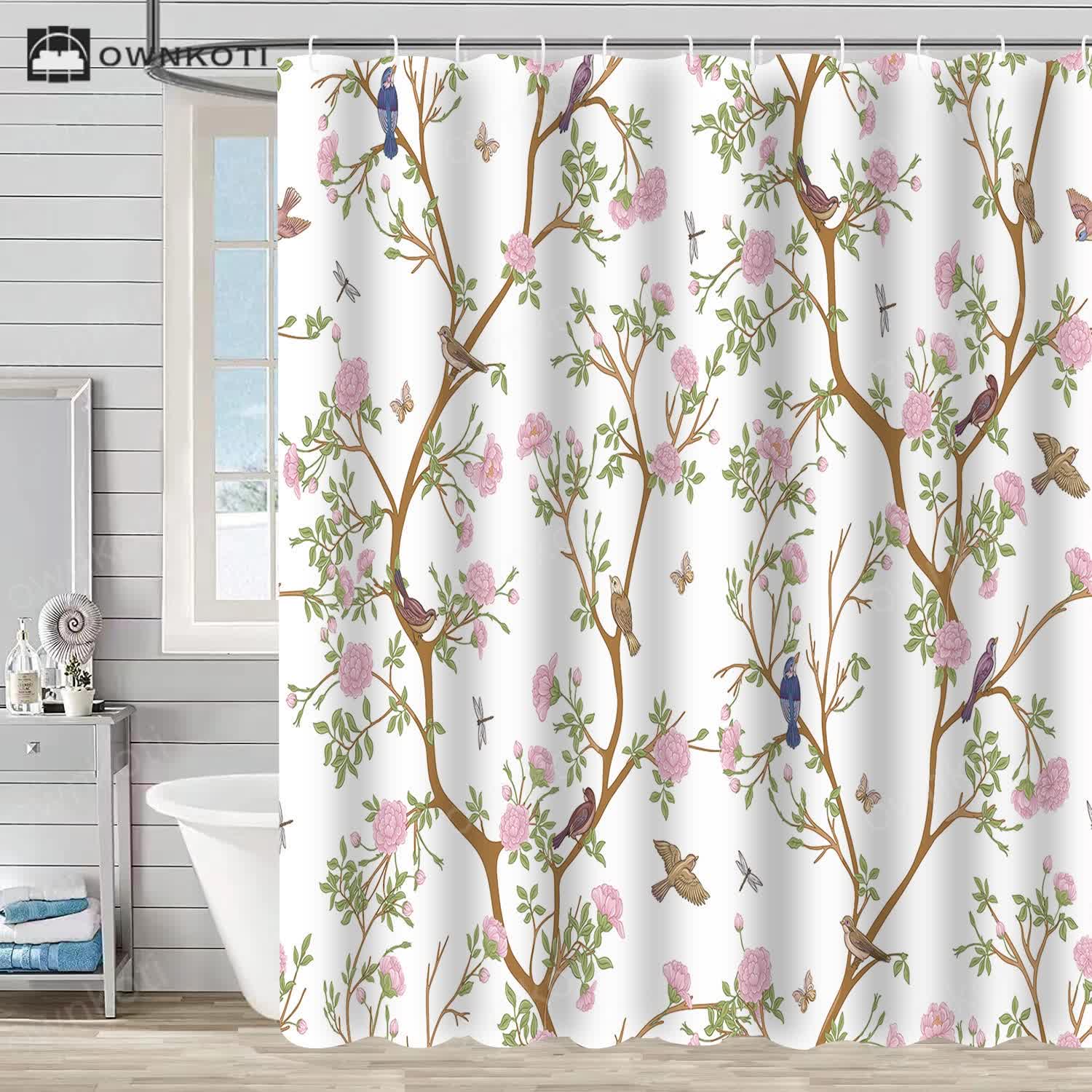 Floral Bird Waterproof Decorative Shower Curtain
