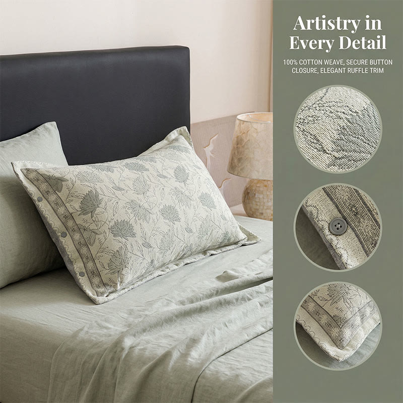 Features:Crafted from 100% cotton gauze with a high-density weave, this pillowcase brings a calm, meditative feel to your bed. Delicate blossoms on thin crossed stems repeat across the fabric in soft, low-saturation green — like a gentle breeze drifting through a quiet garden. The fabric has a natural sheen and a silky smooth hand feel, breathable and moisture-wicking, helping you stay cool and dry through the night. The fabric has a natural sheen and a silky smooth hand feel, breathable and moisture-wicking, helping you stay cool and dry through the night.