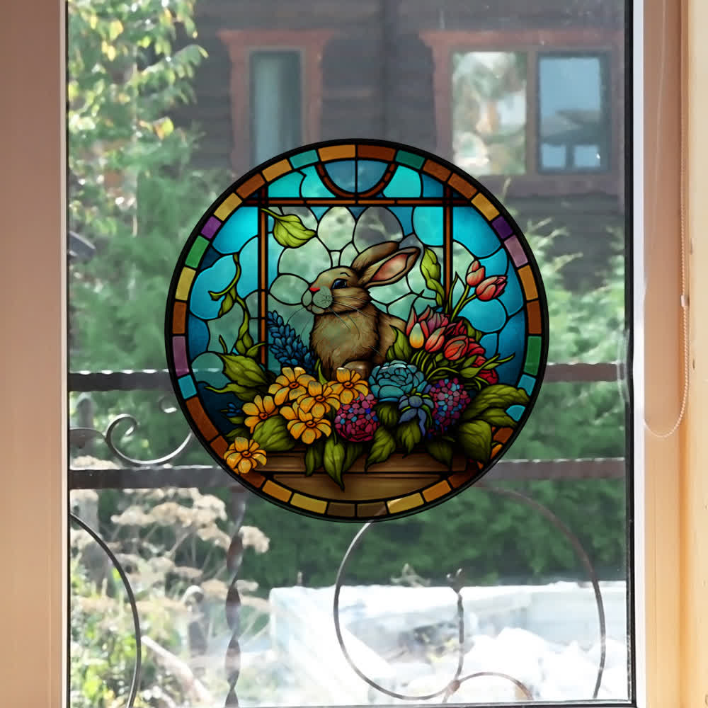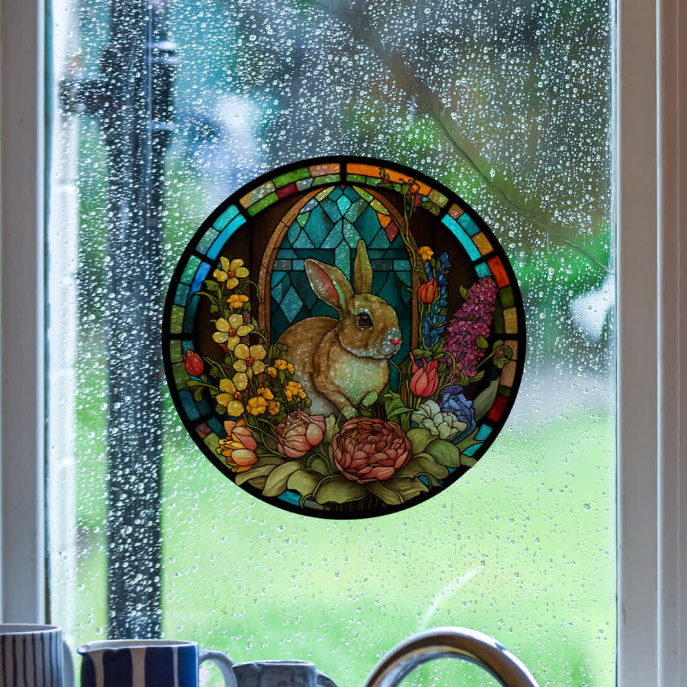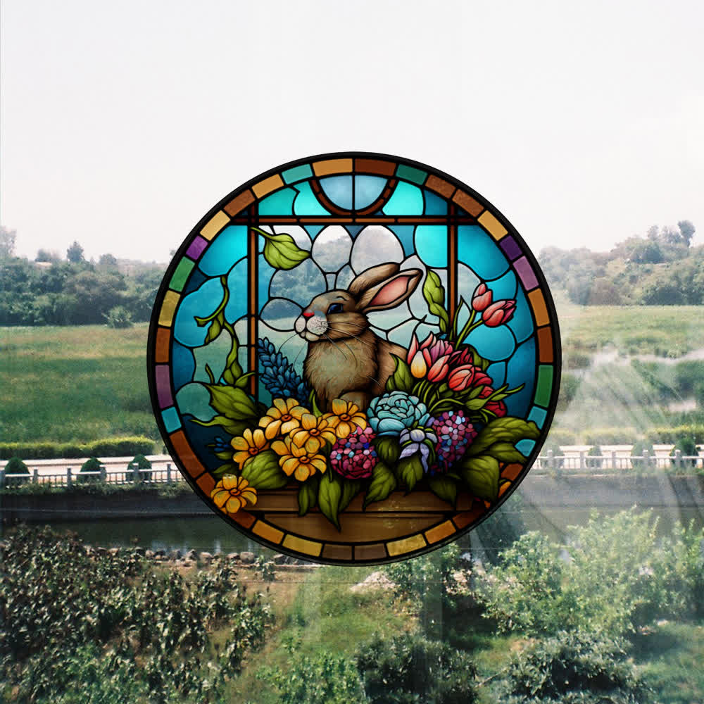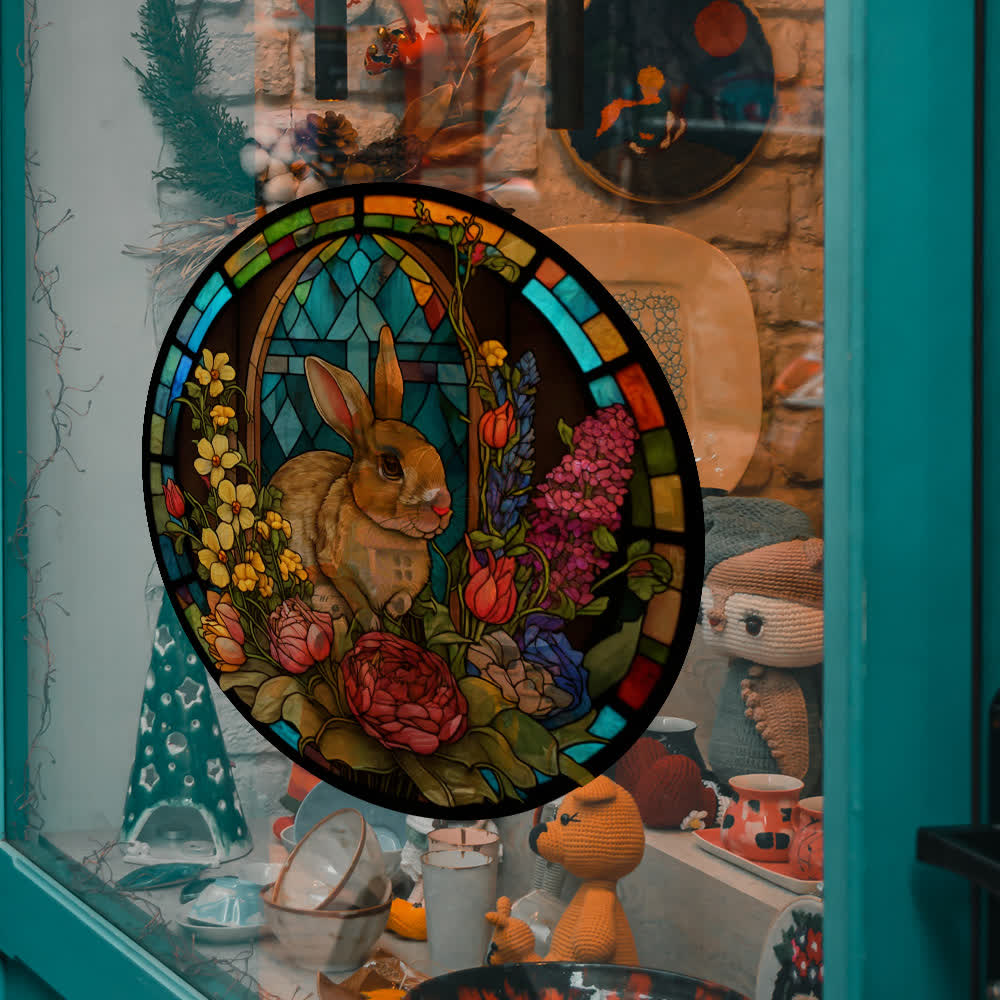 This delightful decoration features a beautifully designed bunny surrounded by vibrant, floral motifs, perfect for celebrating the Easter season. The unique stained glass effect adds a touch of elegance and color to any window, allowing natural light to create stunning visual effects in your space. Easy to apply and reposition without any adhesive, ensuring a mess-free experience.