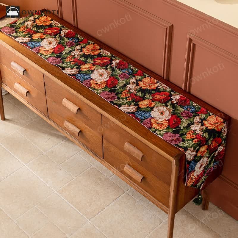 Our French Pastoral Style Floral Table Runner is a charming and elegant home decor piece inspired by the rustic beauty of the French countryside. It features rich colors and delicate floral patterns. Made from premium fabrics, it adds a touch of romantic, vintage charm to any table setting and is perfect for dining tables, sideboards, coffee tables.