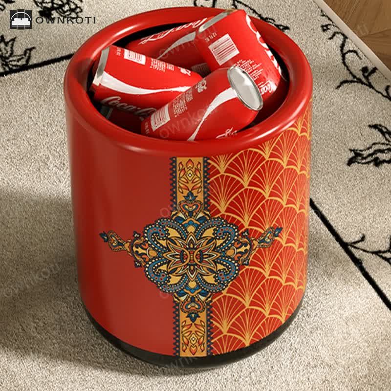 The unique double-barrel design provides generous capacity while discreetly hiding trash bags for a tidy appearance. The retro leather texture adds elegance and nostalgia, making it a charming addition to any home or office. Crafted from high-quality materials, this durable trash can is built for everyday use.